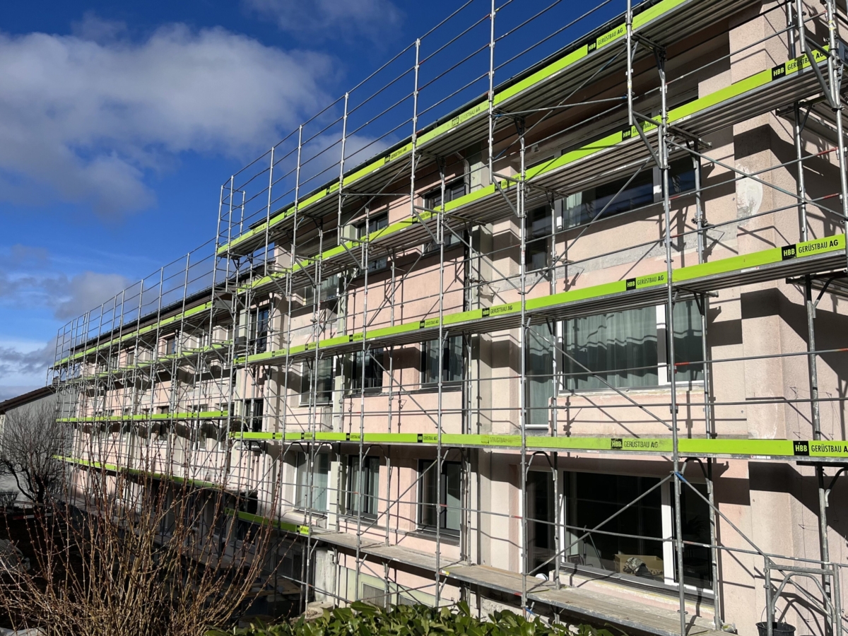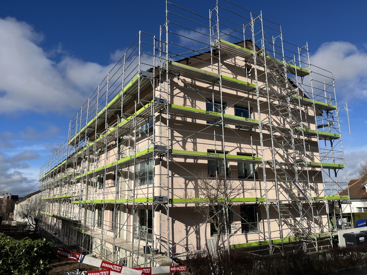 Bei der Sanierung an dem Chaumontweg 6-10 sind wir beauftragt, den bestehenden Putz sowie die Dämmung zu entfernen und fachmännisch zu entsorgen. In einem weiteren Schritt erstellen wir die neue verputzte Aussenwärmedämmung mit einer 180 mm dicken Mineralwolldämmung sowie den netzarmierten Grundputz, Deckputz und den zweifachen Anstrich.